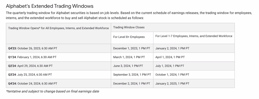 Google’s Trading Windows and the Employee Trading Plan (ETP)